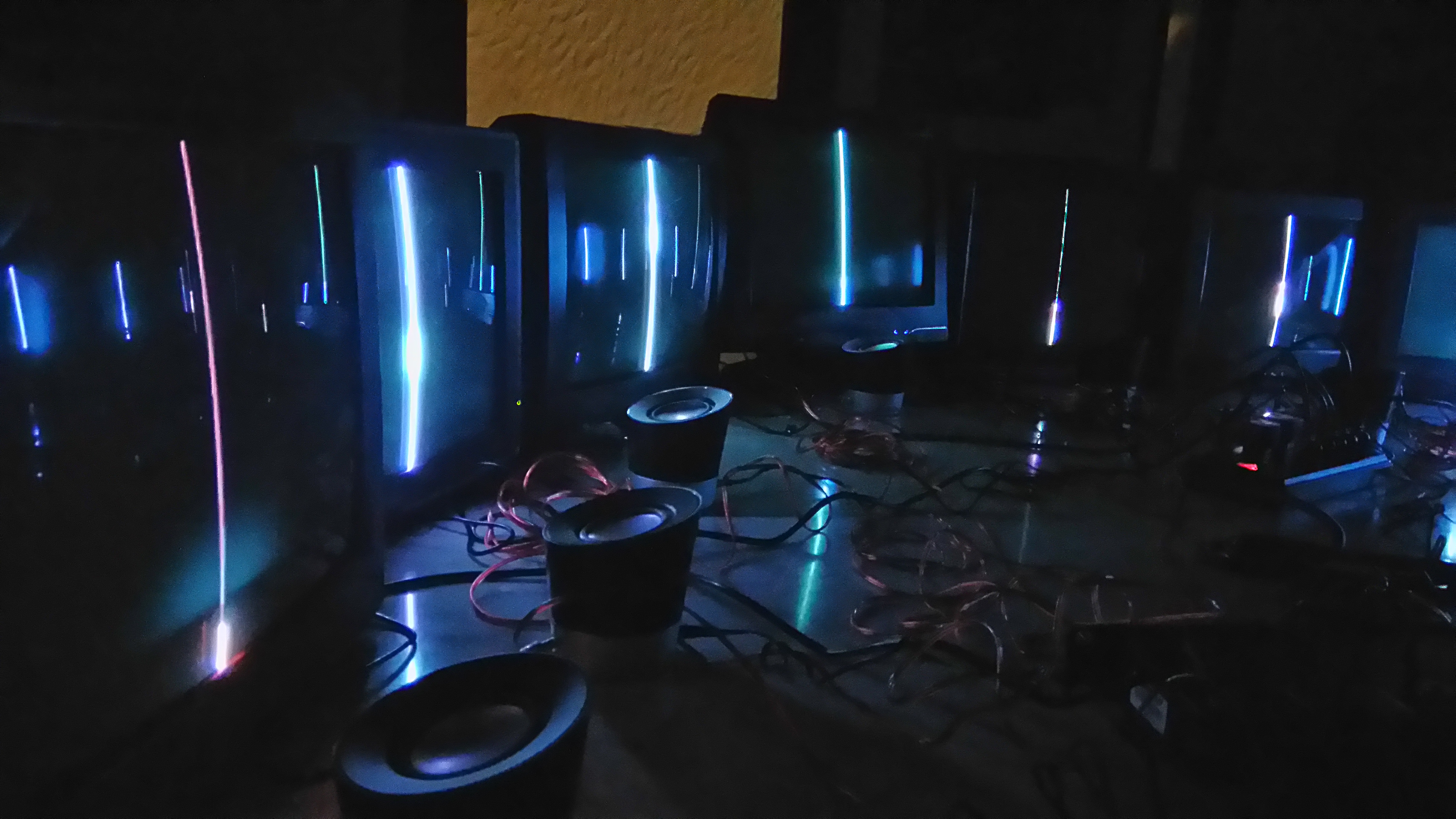 18-12mH is an installation where the electromagnetic fields are translated to an audiovisual medium using modified speakers and CRT monitors. The representation is the result of a series of recordings of the fields from common devices such as fans, lights, computers, televisions, etc.